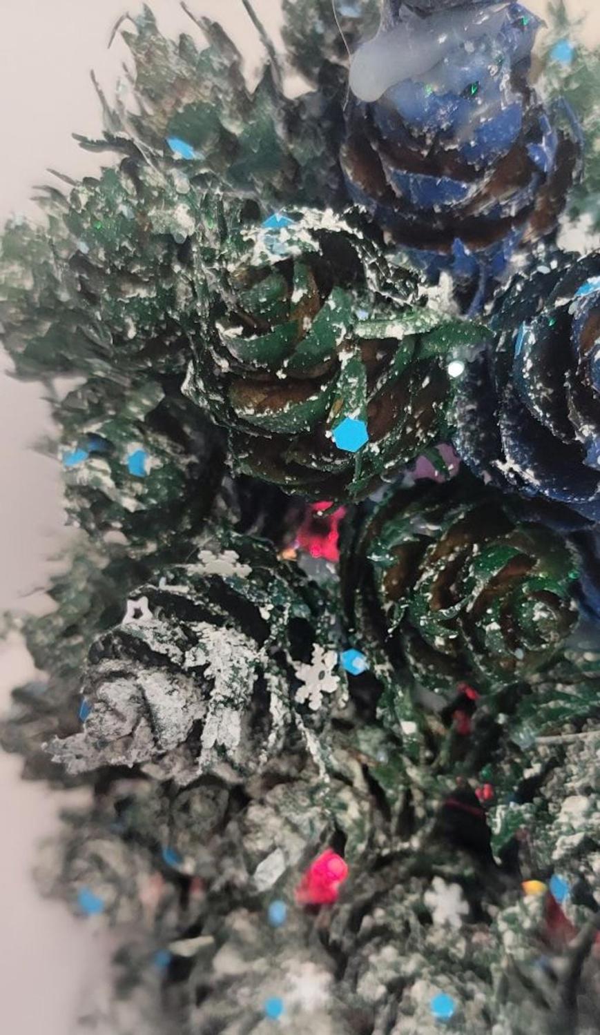 Move beyond traditional plastic decor with this enchanting, one-of-a-kind Handmade Pinecone Christmas Tree. Each pinecone is individually painted in rich hues of Emerald Green and Deep Indigo Blue, then delicately "frosted" with a dusting of snow to create a breathtaking tabletop display. A set of warm, colored plug-in lights is nestled within the structure, illuminating the piece with a magical, cozy glow that will elevate any holiday mantel or entryway. Handpainted Finish: Features a unique color palette of blue and green, highlighted by a dusting of snow/flocking for a sophisticated winter look. Built-in Plug-in Lights: Unlike battery-operated decor, this tree comes with colored, plug-in lights for reliable, long-term illumination all season long. Artisan Craftsmanship: Carefully constructed from numerous natural pinecones, showcasing exceptional attention to detail and a high level of labor. Perfect Tabletop Size: Ideal for desks, side tables, entryways, or as a focal point in a holiday village display, measuring approximately 9.5" tall x 7" w. Durable & Unique: A lasting piece of holiday art that stands out from mass-produced items and makes a memorable gift. Bring this unique piece of winter magic home! Click 'Add to Cart' to make this stunning artisan pinecone tree the centerpiece of your holiday decorating this year.