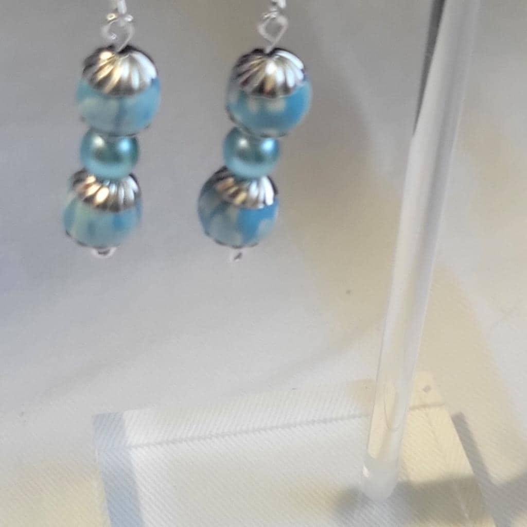 Blue & white dangle drop earrings handmade