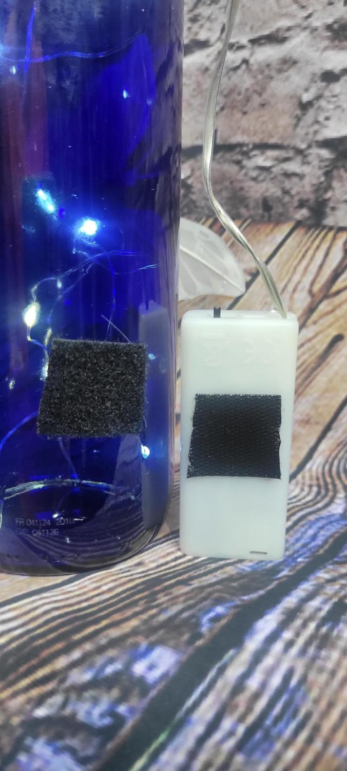 A gorgeous cobalt blue wine bottle repurposed into a table centerpiece for home, a wedding table, or as simple as your night stand or end table. 3 white butterfly appliques have been added, along with a string of LED fairy lights, which the box is conveniently velcroed onto the back, making it easy to turn on and off, and replace the 2x AA batteries when needed. I'm able to gift wrap this and include a gift receipt prior to shipping, please just message me if you need this done.