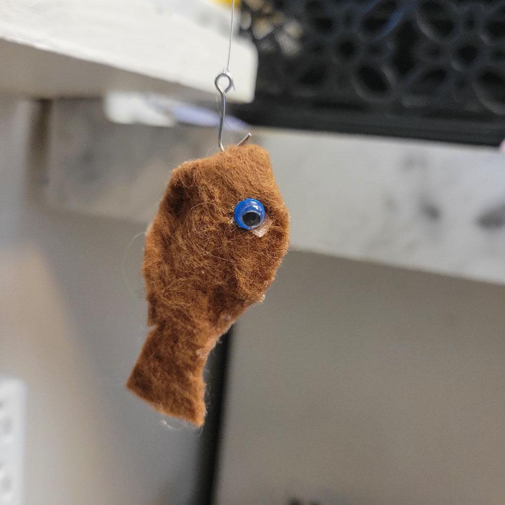 Fishing Gonk Gnome with pole and fish/ Shelf sitter/ Tiered tray decor/ Gnome decor