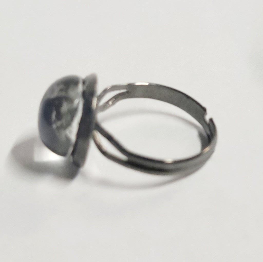 Hand crafted 12 mm color changing mood rings on a gun black metal adjustable band. Fits ring sizes 6.5-7.5 best.