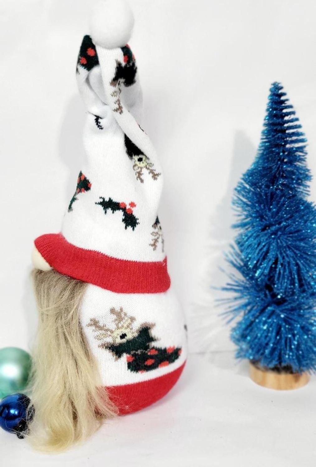 Hand crafted Christmas sock gnome with reindeer and mistletoe