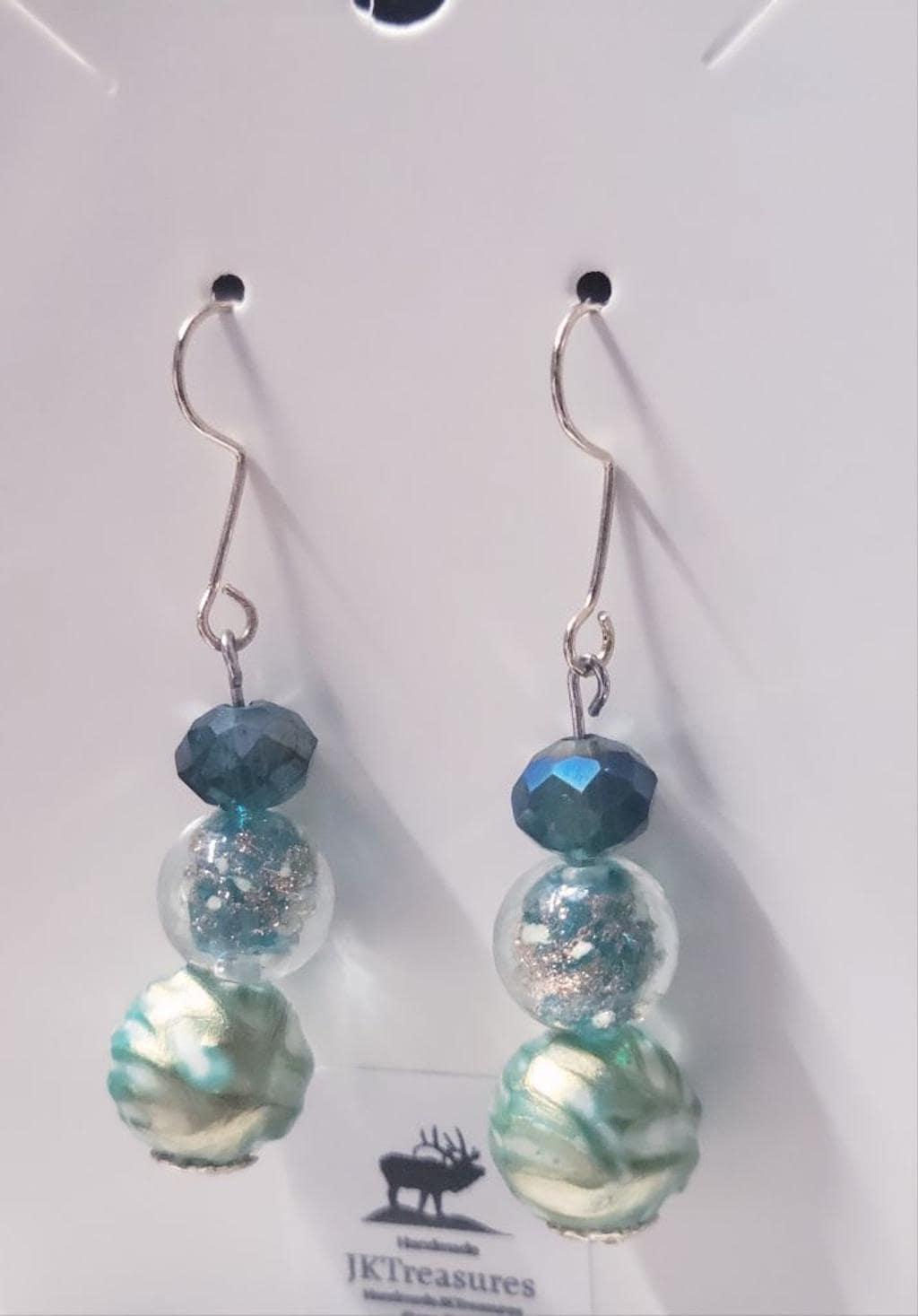 • Elegant Design: HandmadeJKTreasures presents these exquisite gold tone hook drop earrings. Crafted from high-quality materials, they feature multi-faceted green beads, clear, green, and gold glass beads, along with a green and gold swirled glass bead. A dainty gold tone bead end cap adds a touch of sophistication. • Dimensions: These earrings measure approximately 1" in length. Perfect for those who appreciate subtle yet stylish accessories. The combination of green and gold hues creates a harmonious look that complements various outfits. • Craftsmanship: Each piece is meticulously handcrafted, ensuring durability and aesthetic appeal. Ideal for adding a touch of elegance to your jewelry collection. Enjoy the beauty of handcrafted jewelry with HandmadeJKTreasures.
