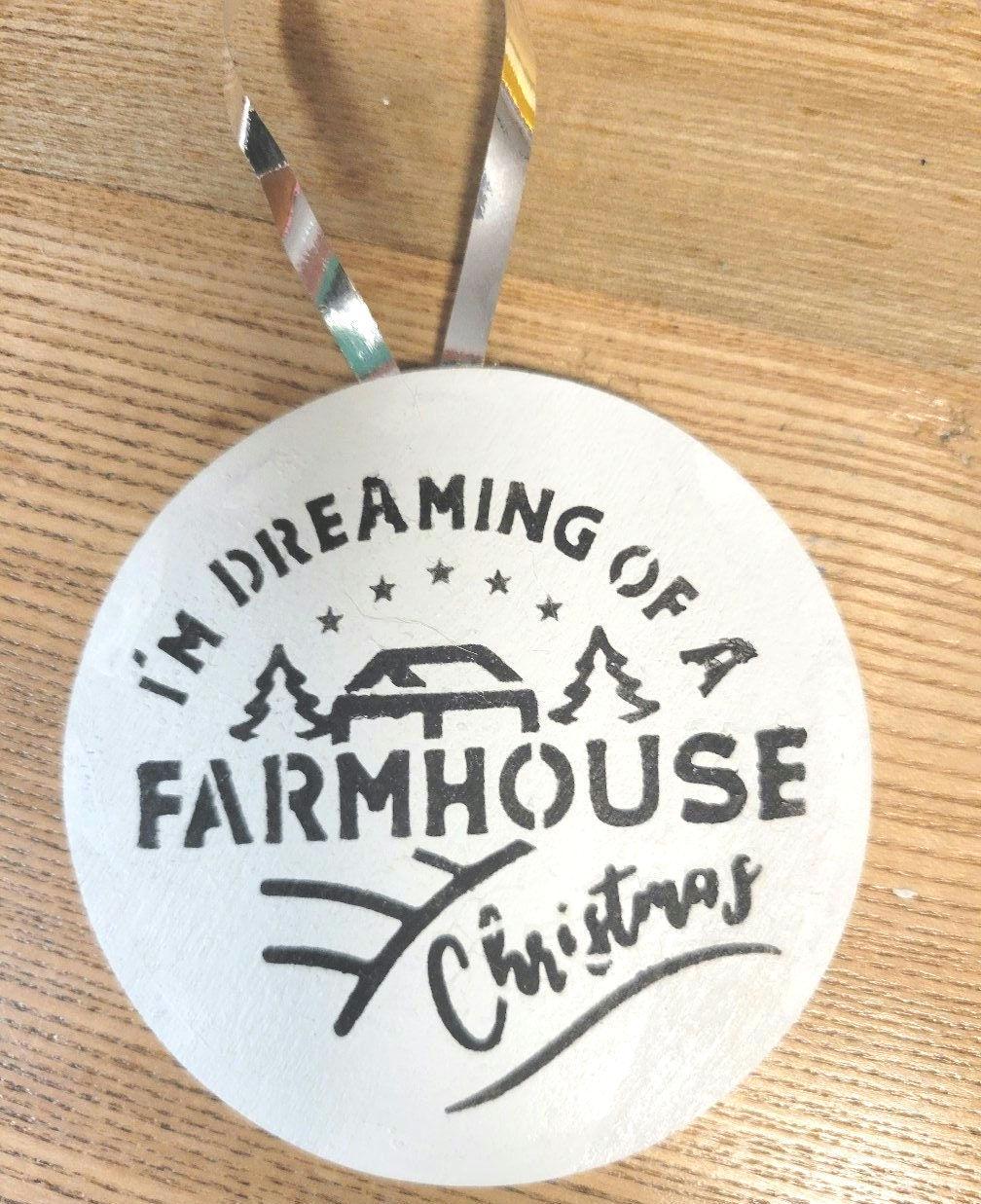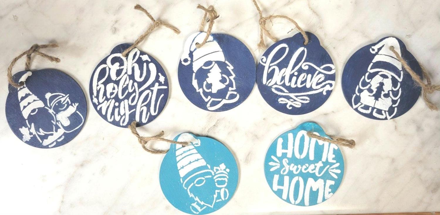 Handpainted 3" wood disc ornaments of your choice of color paint, saying, and twine or ribbon to hang from. Please inquire as to availability.
