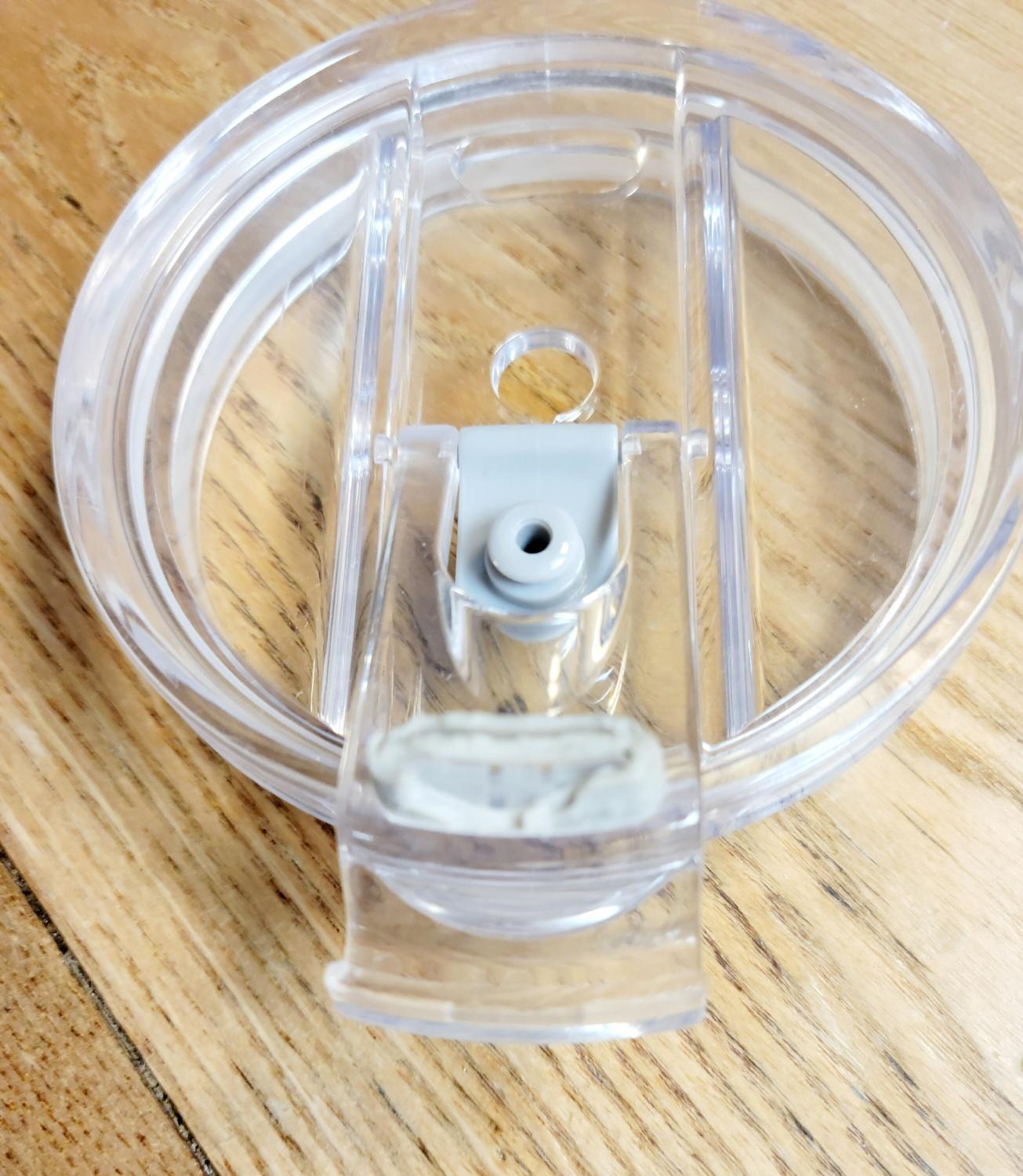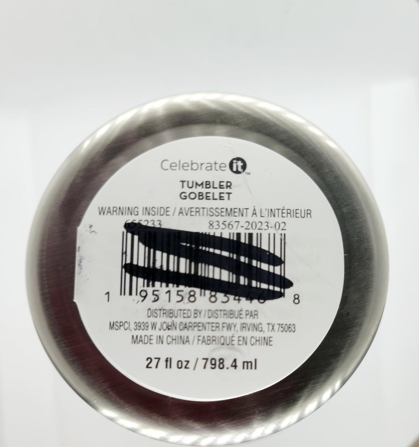 Handpainted "Super Mom" in aqua paint, on a stainlesssteel, 27 oz tumbler, with a lid and straw. Handwash only and not microwave safe. The lid is brand new, but upon further inspection, there are some light scratches, and the rubber seal shows some damage, but the seal still works perfectly.
