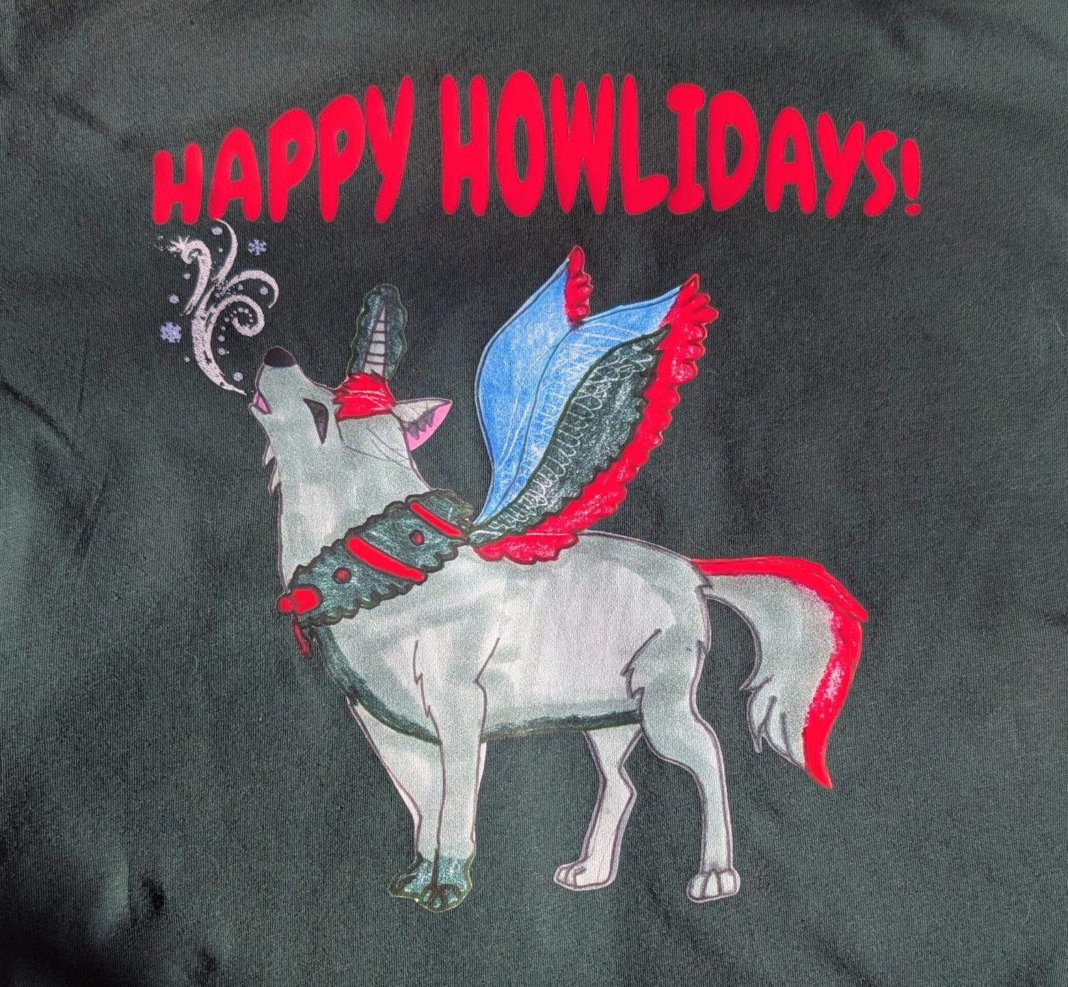This exclusive design features my original art of an alicorn wolf. Our logo is featured on the back of the shirt.