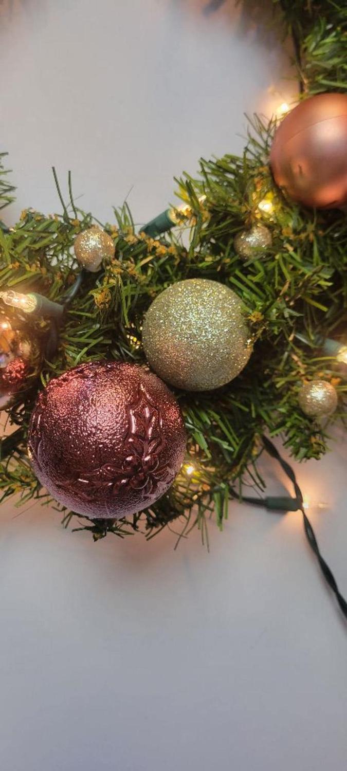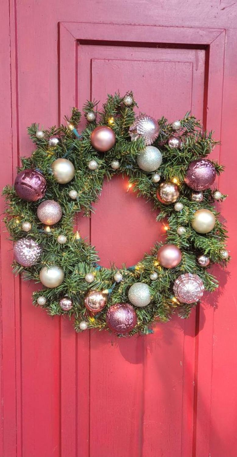 Luxury Pink & Gold Christmas Wreath, 19" Handmade Prelit Holiday Door Decor