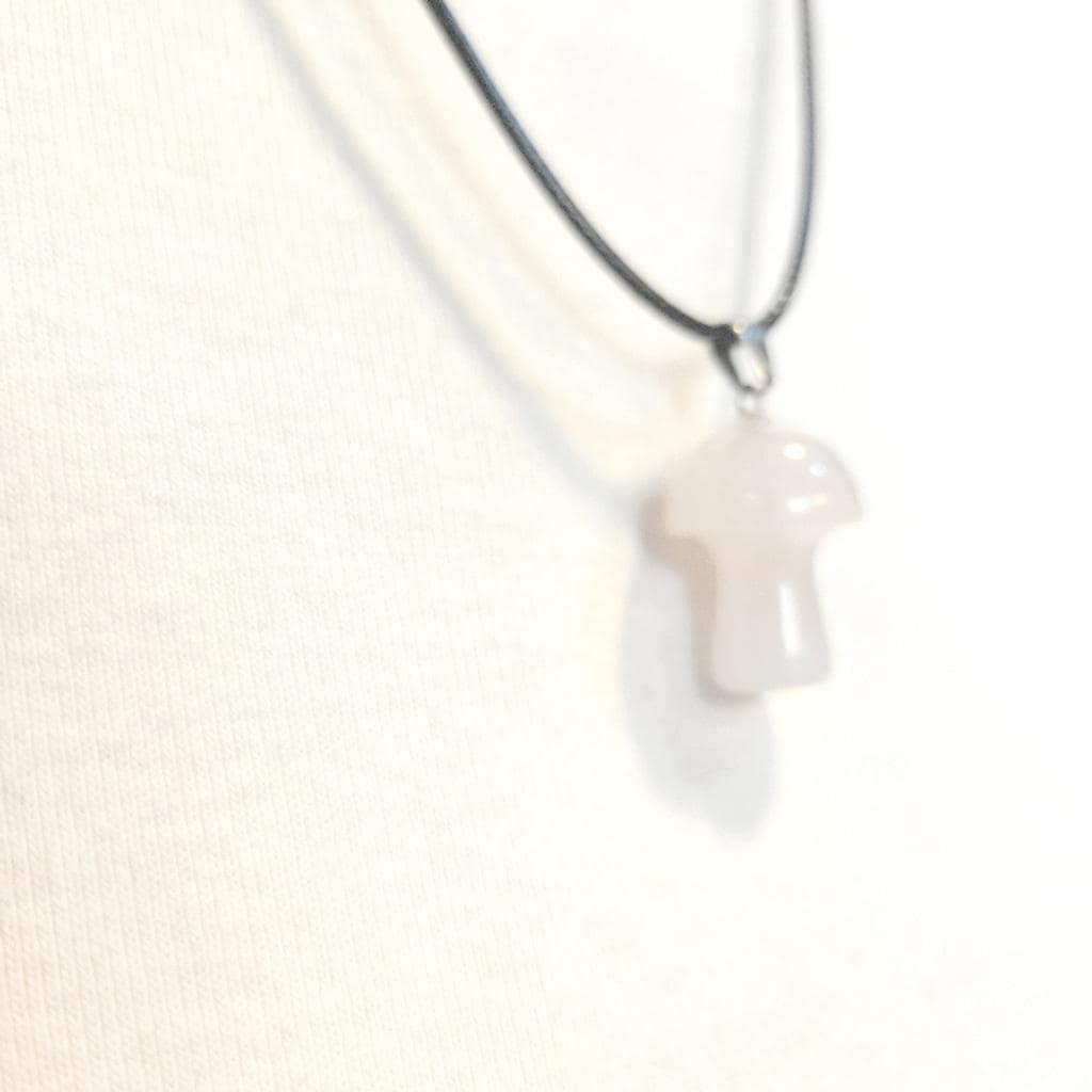 This elegant natural 1/2" rose quartz crystal mushroom pendant hangs from an 18" adjustable corded necklace and adds a whimsical touch to any outfit. Perfect for everyday wear or special occasions.