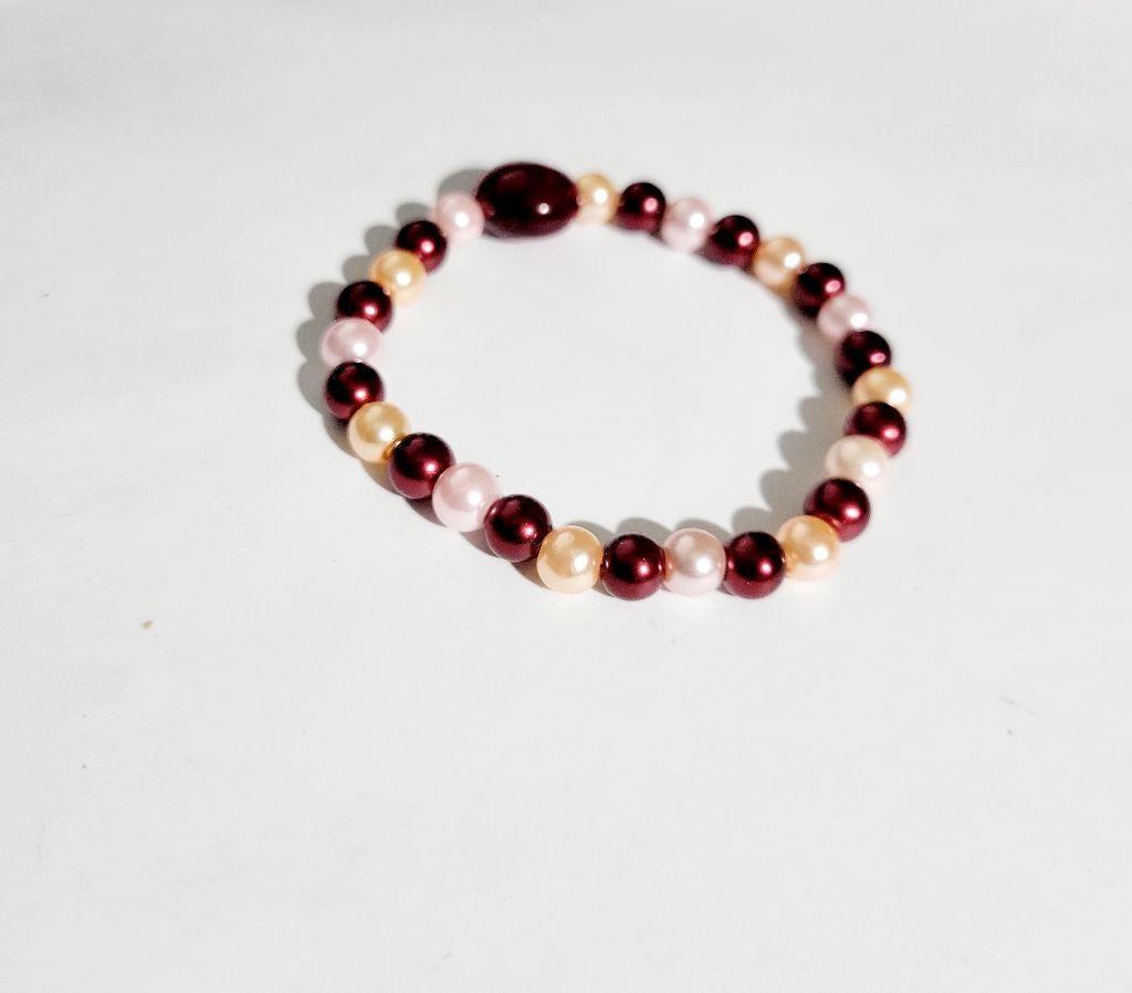 Pearlescent glass and cherry beaded bracelet hand crafted