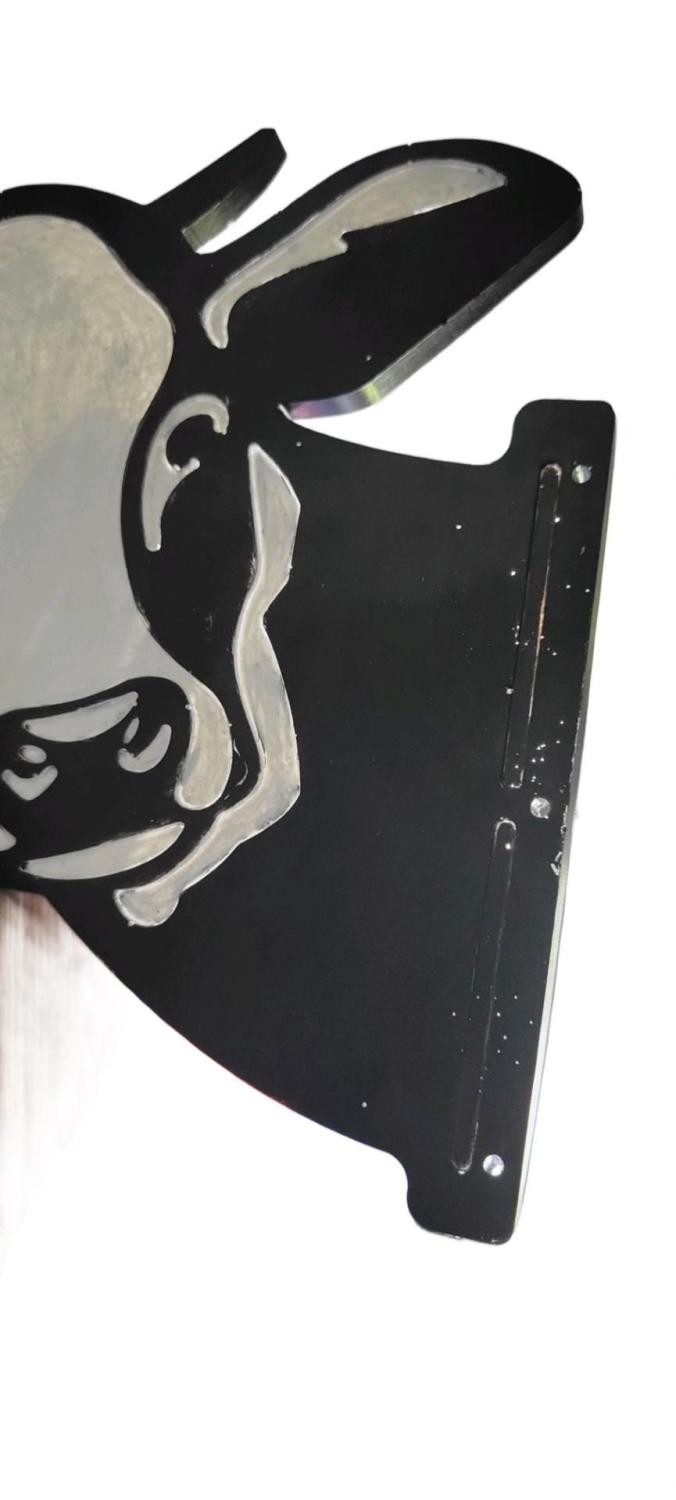 Elevate your farmhouse decor with this stunning Peek A Boo resin Farmhouse Cow wall hanging art. Handcrafted with care and attention to detail, this unique piece will add a touch of whimsy and charm to any room. Made from high-quality resin and then handpainted, the cow's lifelike features are beautifully rendered, making it a true work of art. Measurements are approximately 8" w x 9" t. There are 3 holes to hang the cow from in the neckline. There are a few see-through spots from bubbles when held up to a light. - Handcrafted with Care - High-Quality Resin Material - Lifelike Details - Charming and Whimsical Addition to Any Room #FarmhouseDecor #HandcraftedArt #ResinCowHanging #WhimsicalDecor