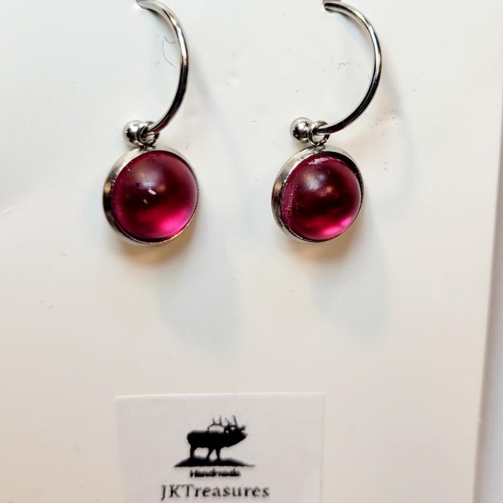 Hand crafted elegant 10 mm purple crystal sea glass rhinestone dangle drop hoop earrings set on a stainless steel bezel tray. Perfect for adding a pop of color to any outfit. Check out my other listings for the matching necklace. Discount for bundling both!