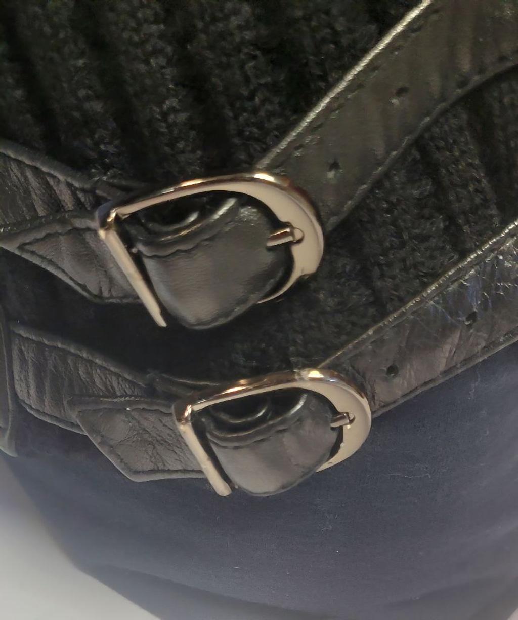 This is a stunning, hard-to-find Carlisle piece combining luxury leather with unique vintage styling. This authentic moto silhouette features high-quality materials and is presented in exceptional, truly exceptional vintage condition. ✨ Key Features: Brand: Carlisle Style: Classic Biker/Moto Jacket, Zip-Up Front Color: Deep Black Size: Medium (M) Material: 100% Genuine Leather (Shell) with 100% Ribbed Wool Sleeves and Collar (providing a comfortable, sweater-like fit). Condition: Excellent Vintage Condition. All leather is supple and soft; hardware is hardly scratched; interior lining is clean. No signs of scuffs, or discoloration. Shoulder to Shoulder: 18" Pit to Pit (Bust): 16" Sleeve Length (shoulder seam to cuff): 28" Length (collar seam to bottom hem): 18" Why Buy This Piece? A true statement piece that blends the edgy moto look with the cozy detail of ribbed wool, making it perfect for year-round wear. A high-end vintage designer item ready for a new closet!