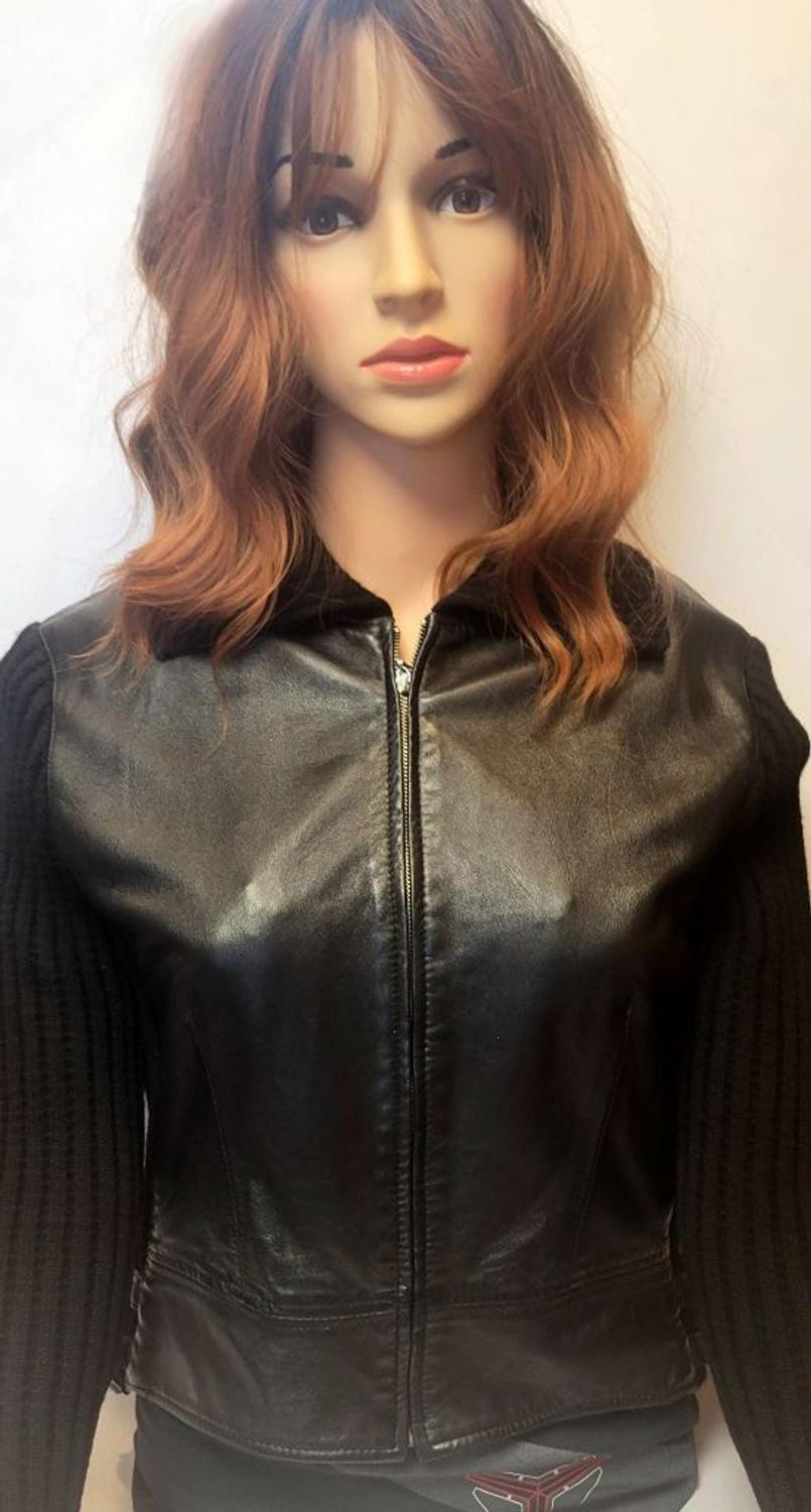 RARE Vintage Carlisle Black 100% Leather Moto Jacket Ribbed Wool Knit Detail