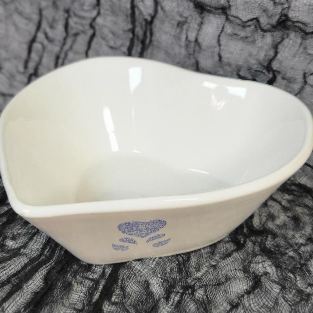 Gently used, rare vintage Corningware "Blue Hearts" heart-shaped ceramic baking dish. There are a few natural blemishes and tiny chips as shown. Measurements are approximately 8.5x8.5x3.5".