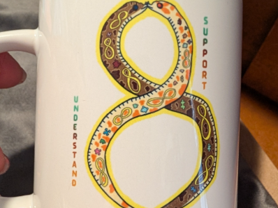 This is a white 15 ounce ceramic coffee mug featuring original Ausome Alicorn digital art of two hognose snakes in a infinity autism symbol. Since we make these to order, the photos shown are a representation of the product, and may not be the exact item you will receive.