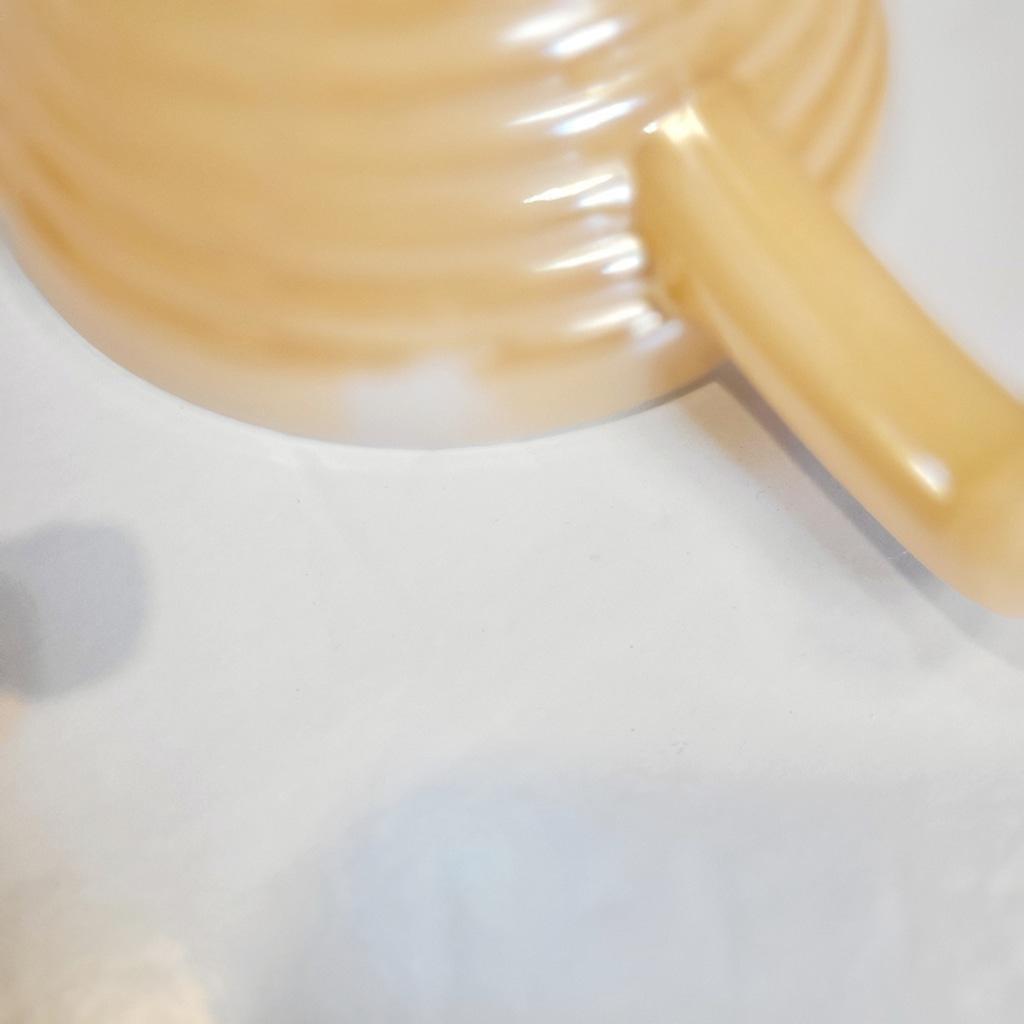 Set of 2 Fire King by Anchor Hocking Peach Luster Ovenware soup bowls with a beehive shape and ribbed handle, manufactured in the 1950's. Measurements are approximately 5.5x2.5". There is 1 small scratch in 1 bowl but hardly noticeable.